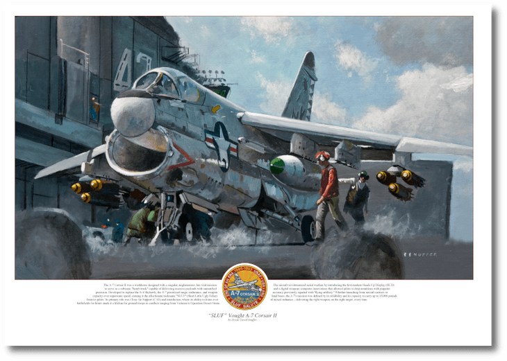 The A-7 Corsair II was a workhorse designed with a singular, unglamorous, but vital mission: to serve as a subsonic "bomb truck" capable of delivering massive payloads with unmatched precision. Developed to replace the A-4 Skyhawk, the A-7 prioritized range, endurance, and weapon capacity over supersonic speed, earning it the affectionate nickname "SLUF" (Short Little Ugly Feller) from its pilots. Its primary role was Close Air Support (CAS) and interdiction, where its ability to loiter over battlefields for hours made it a lifeline for ground troops in conflicts ranging from Vietnam to Operation Desert Storm. The aircraft revolutionized aerial warfare by introducing the first modern Heads-Up Display (HUD) and a digital weapons computer, innovations that allowed pilots to drop munitions with pinpoint accuracy previously equated with "flying artillery." Whether launching from aircraft carriers or land bases, the A-7's mission was defined by its reliability and its capacity to carry up to 15,000 pounds of mixed ordnance—delivering the right weapon, on the right target, every time.
